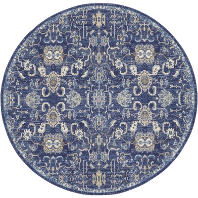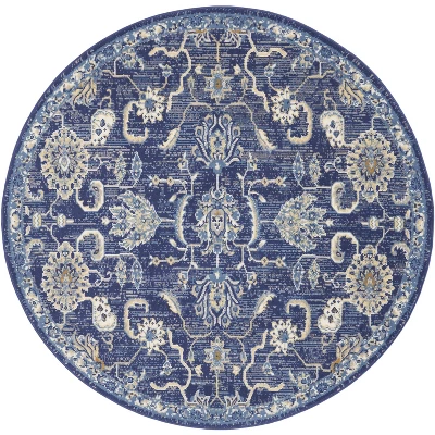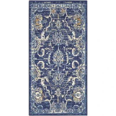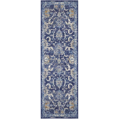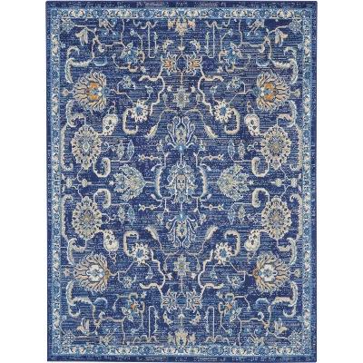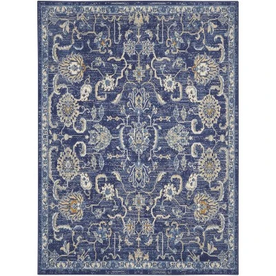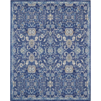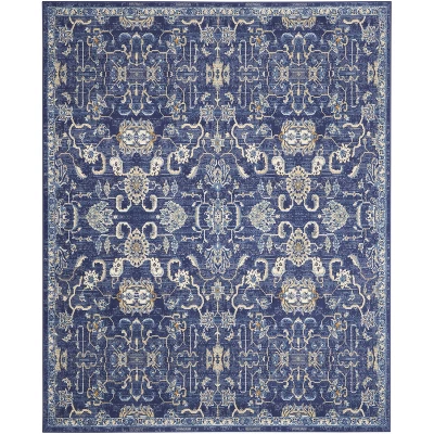 With finely detailed palmettes on an abrash blue field, this Grafix Collection rug by Nourison brings the elegance of Persian rug design to your home with a traditional all-over design in beige and gold. Easy-care fibers provide excellent durability and inviting texture for a touch of Old World flavor that’s at home in any décor.