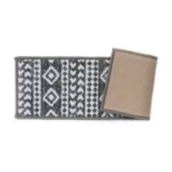 Enrich your stairs with these stunning, yet practical and decorative stair treads. The distressed geometric design adds interest and style to every step. The rubber backing provides additional safety for climbing kids and pets. At 26 inches x 8.6 inches, these machine washable treads are ideally sized for the majority of staircases.